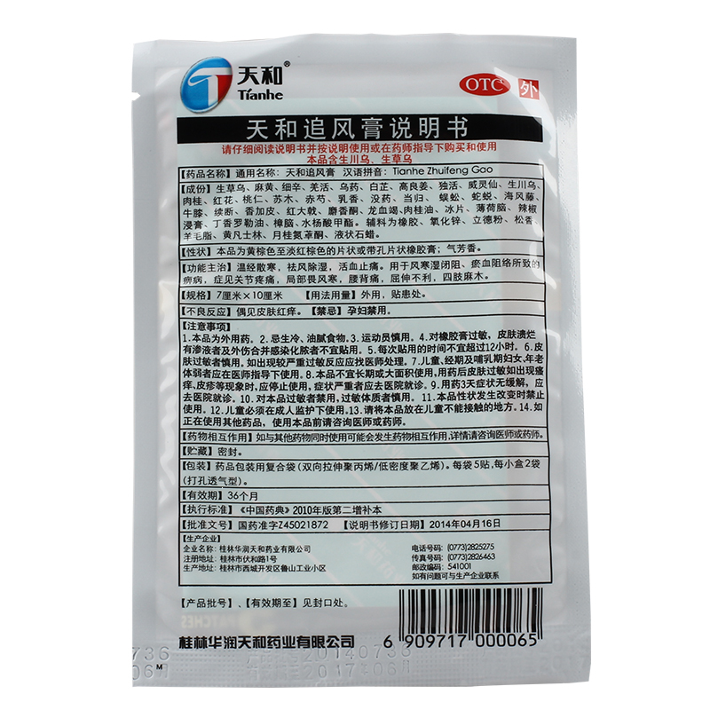 天和追风膏 7cm*10cm*10贴 桂林华润天和药业有限公司