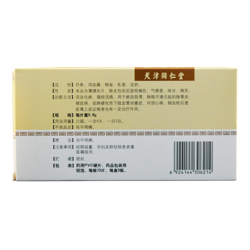脉管复康片 0.6g*12s*3板 天津同仁堂集团股份有限公司