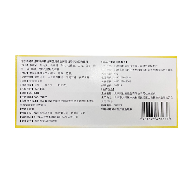 生产产商: 北京同仁堂股份有限公司同仁堂制药厂