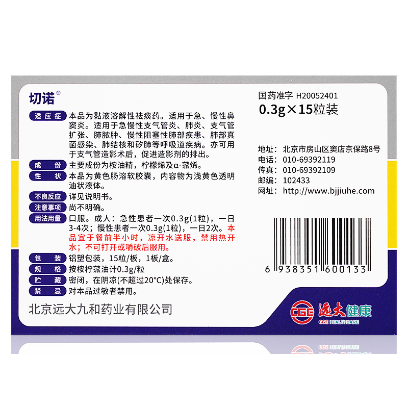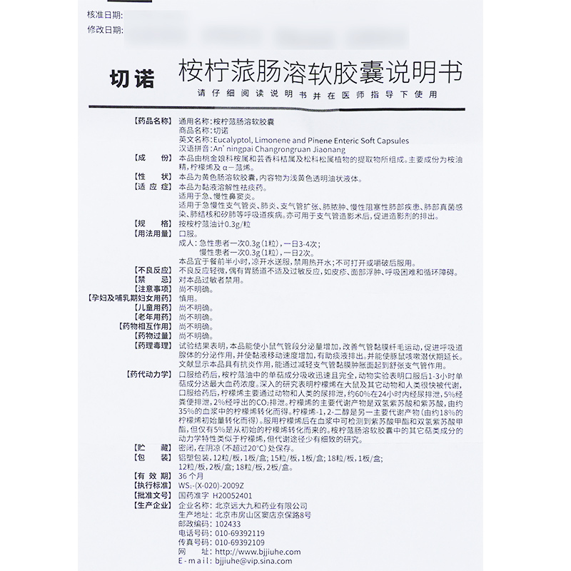 桉柠蒎肠溶胶囊 0.3g*15s 北京远大九和药业有限公司(原北京九和药业