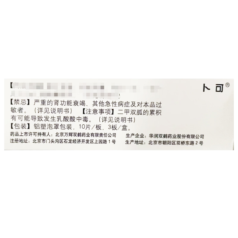 盐酸二甲双胍缓释片 0.5g*10s*3板 北京万辉双鹤药业有限责任公司