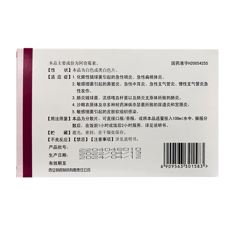 阿奇霉素分散片 0.25g*12s 西安利君制药有限责任公司