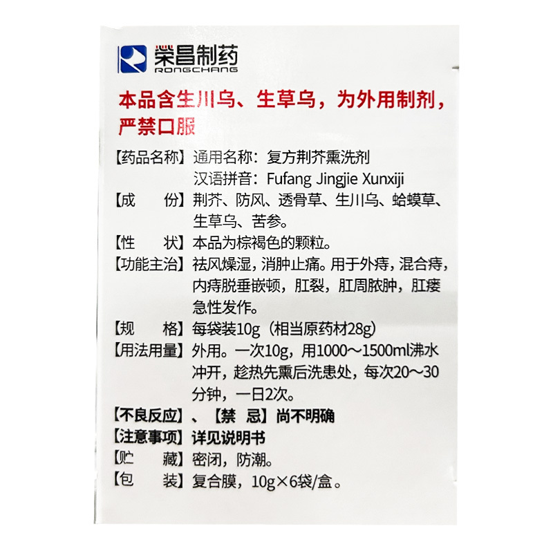 复方荆芥熏洗剂 10g*6袋 荣昌制药(淄博)有限公司