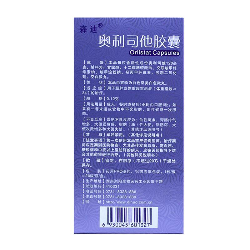 奥利司他胶囊 0.12g*20s 湖南迪诺制药有限公司