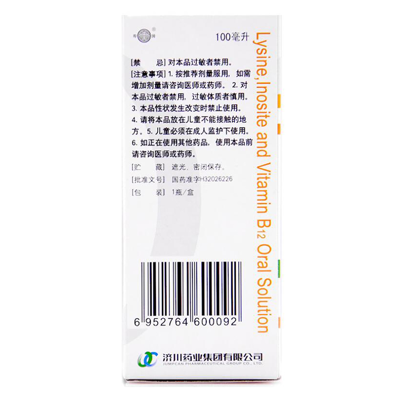 赖氨肌醇维B12口服溶液 100ml 济川药业集团有限公司