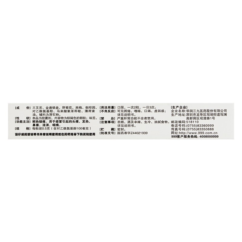 感冒灵胶囊 0.5g*12s 华润三九医药股份有限公司