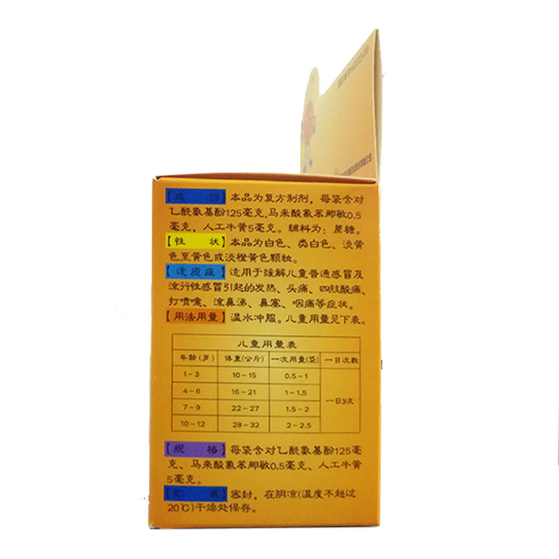 用于缓解儿童感冒及流行感冒及引起的发热,头疼,四肢酸疼,流鼻涕等