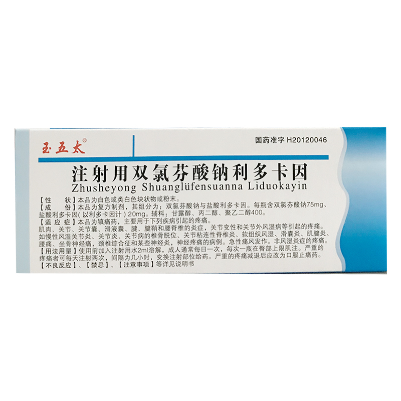 品  名: 注射用双氯芬酸钠利多卡因
