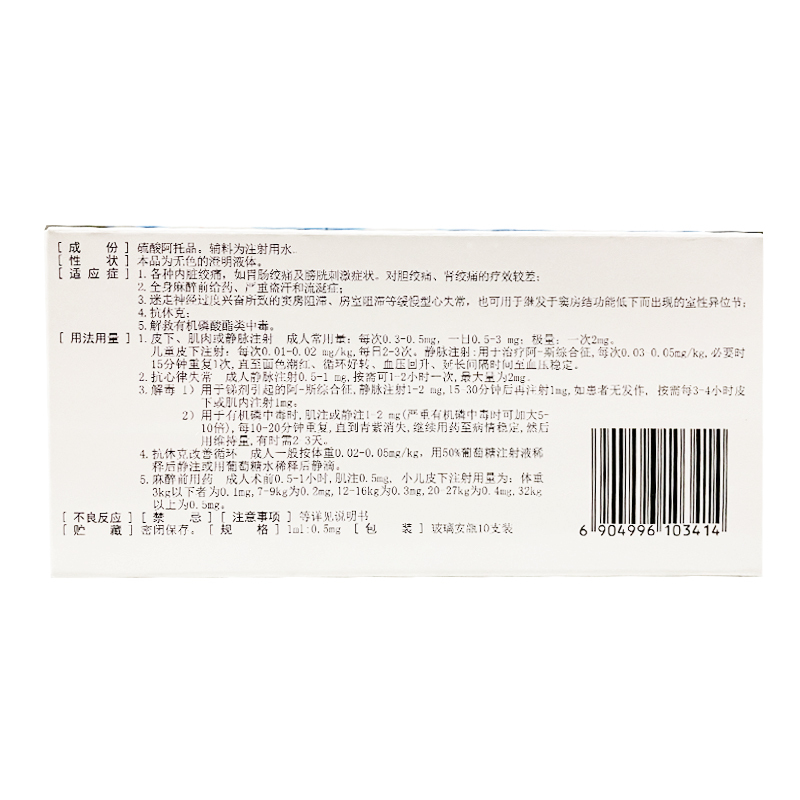 硫酸阿托品注射液 1ml:0.5mg*10支 上海禾丰制药有限公司