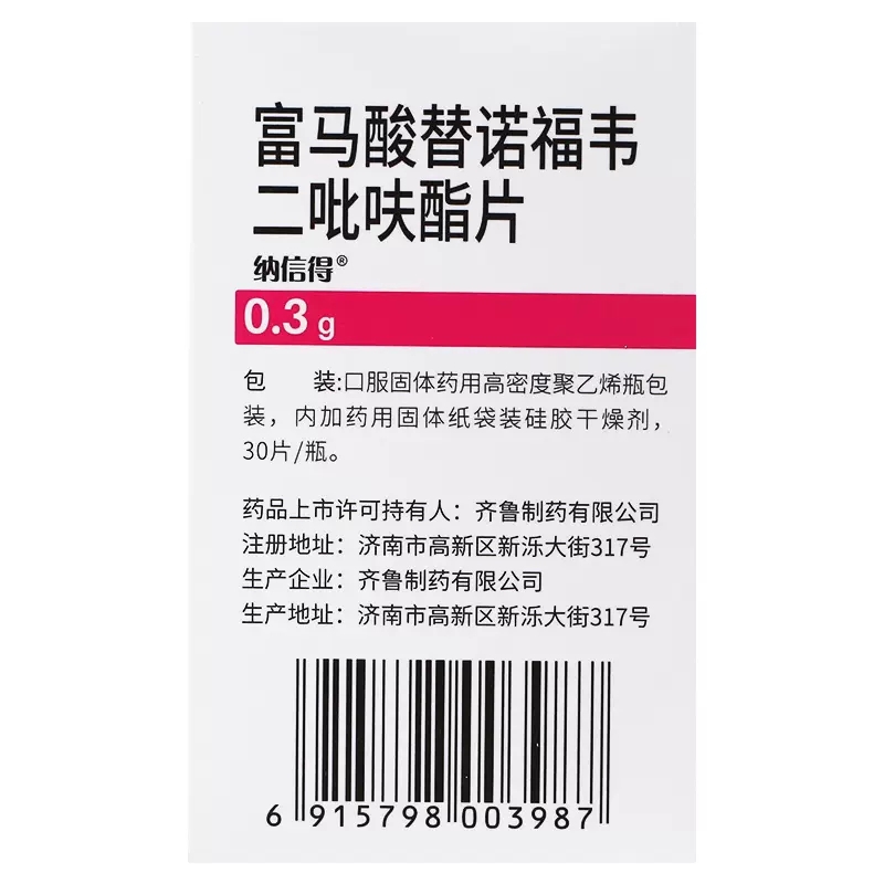 富马酸替诺福韦二吡呋酯片 0.3g*30s 齐鲁制药有限公司