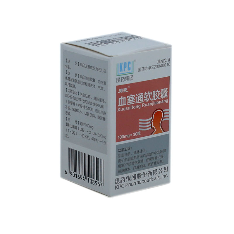 血塞通软胶囊 0.55g*30s(含三七总皂苷100mg) 昆药集团股份有限公司