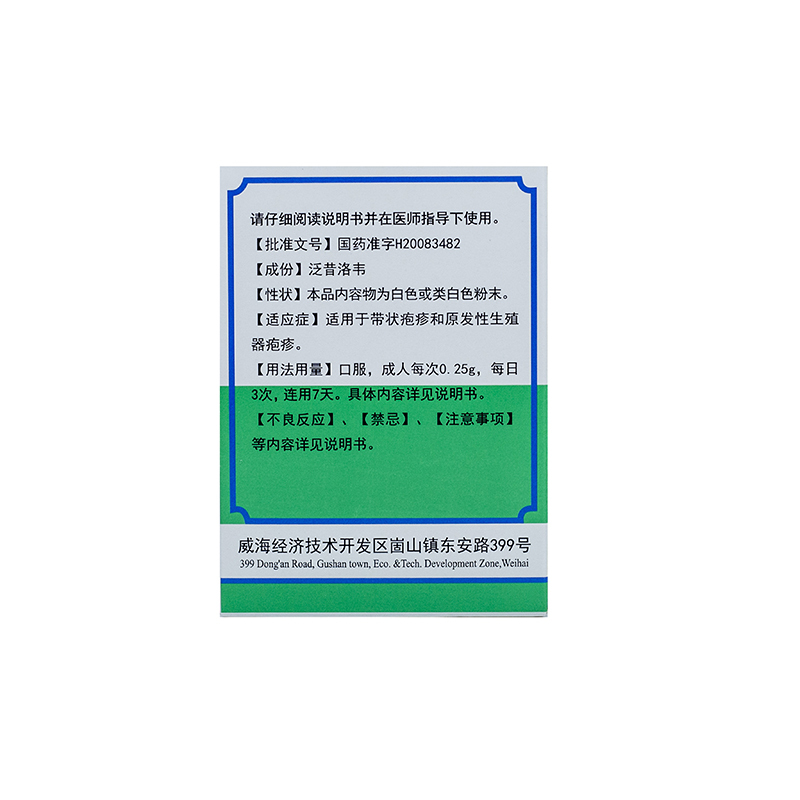 用于治疗带状疱疹和原发性生殖器疱疹。
