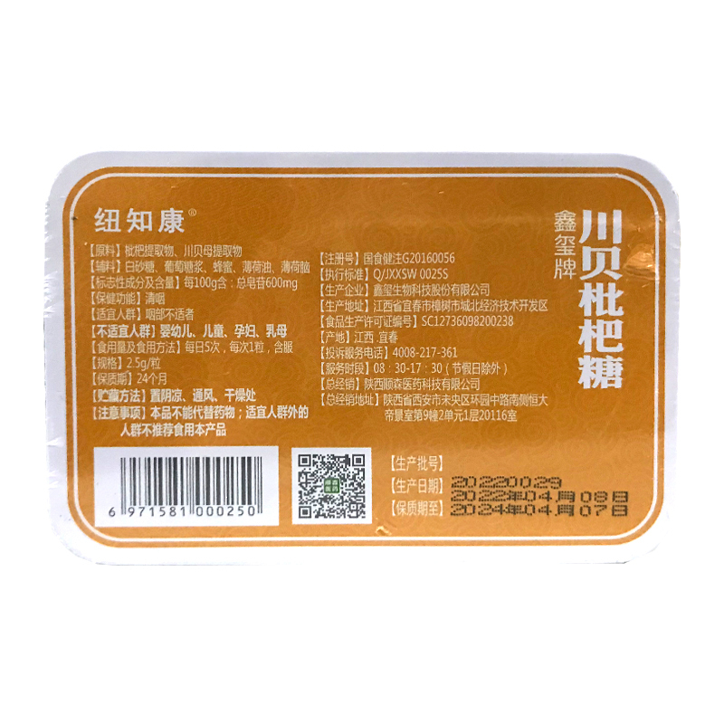 品  名: 纽知康Speakin川贝枇杷糖