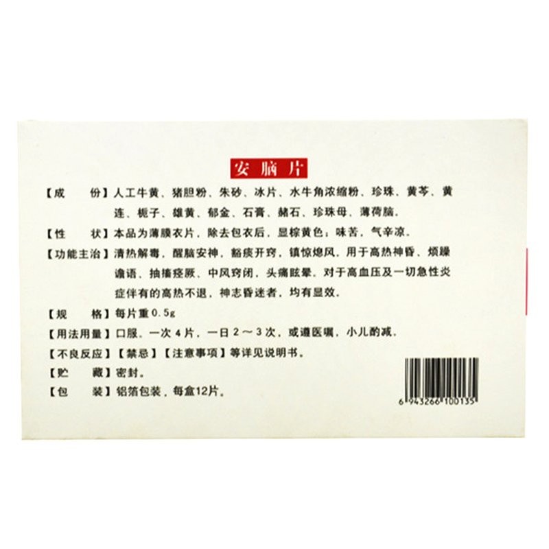 安脑片 0.5g*12s 哈尔滨蒲公英药业有限公司