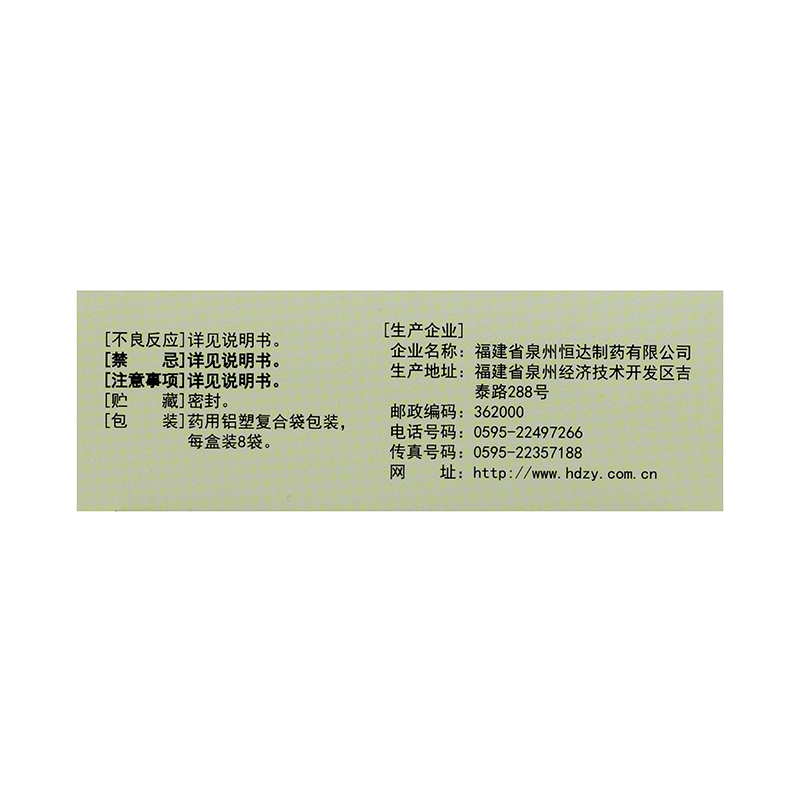 生产产商: 福建省泉州恒达制药有限公司
