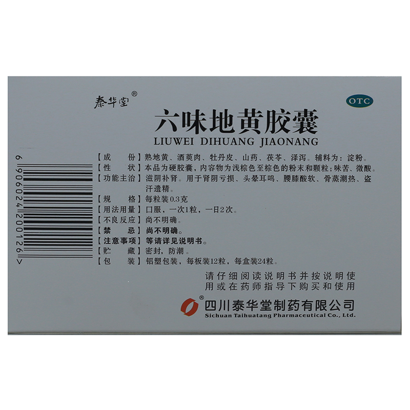 六味地黄胶囊 0.3g*24s 四川泰华堂制药有限公司