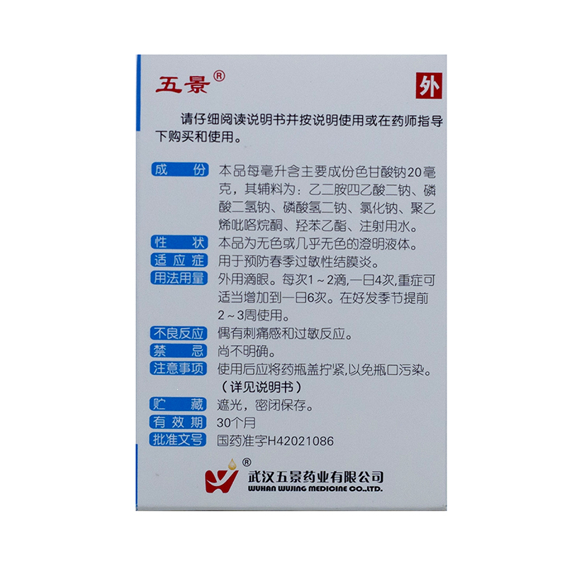 色甘酸钠滴眼液 8ml:0.16g(2%)(10) 武汉五景药业有限公司