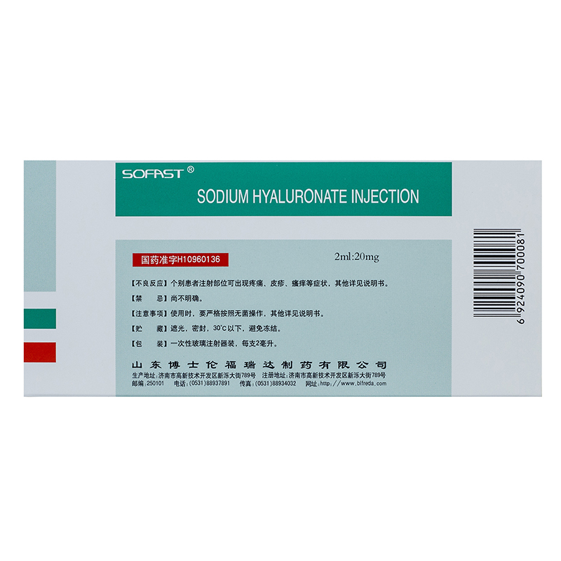 玻璃酸钠注射液(施沛特针) 2ml:20mg 山东博士伦福瑞达制药有限公司