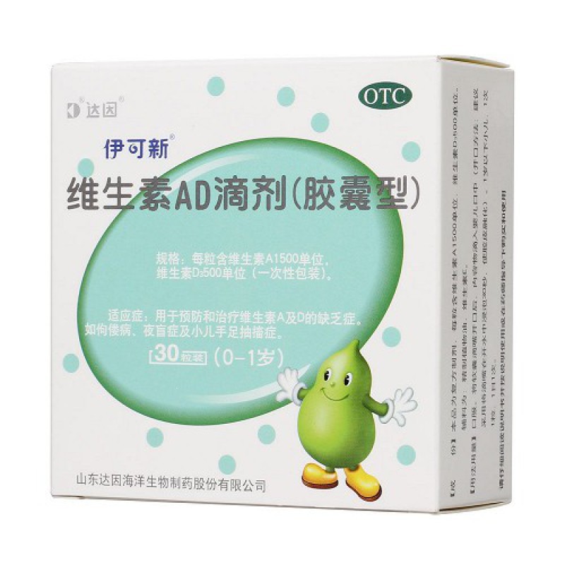 维生素AD滴剂(胶囊型)(伊可新)(0-1岁) A1500U:D500U*30s 山东达因海洋生物制药股份有限公司