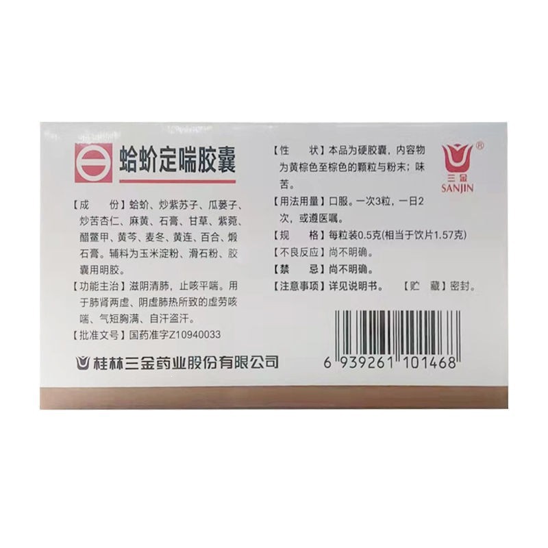 蛤蚧定喘胶囊 0.5g*12s 桂林三金药业股份有限公司