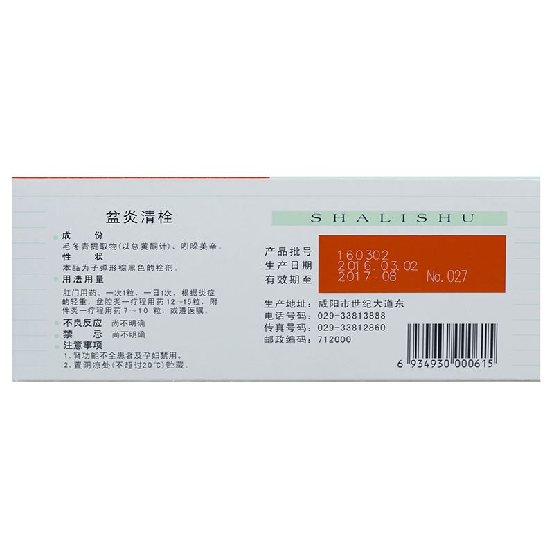 品  名: 盆炎清栓(沙利舒)