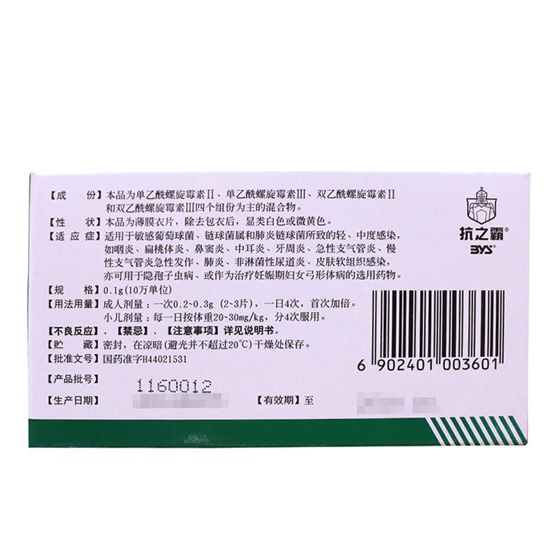 乙酰螺旋霉素片 0.1g*24s 广州白云山医药集团股份有限公司白云山制药总厂