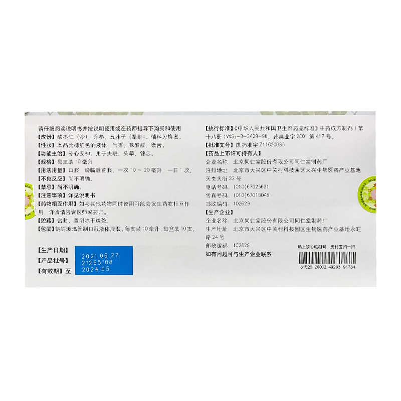 枣仁安神液 10ml*10支 北京同仁堂股份有限公司同仁堂制药厂