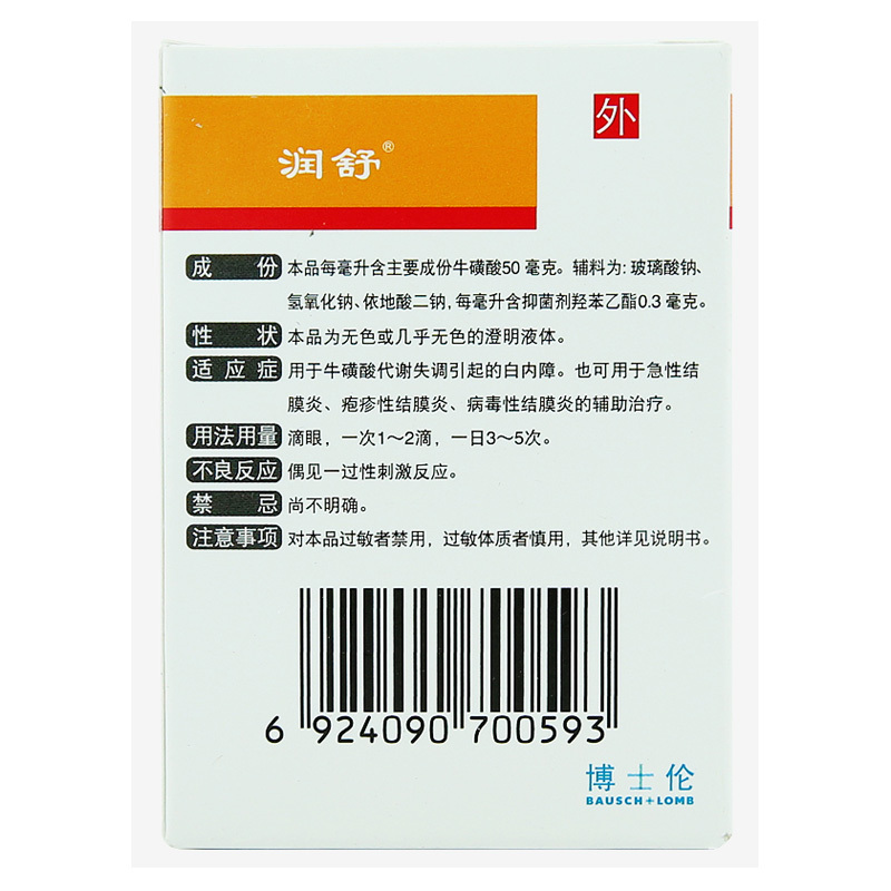品  名: 牛磺酸滴眼液(黄润舒)