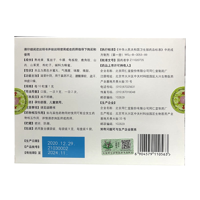 生产产商: 北京同仁堂股份有限公司同仁堂制药厂