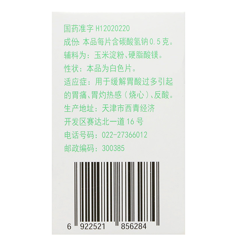 碳酸氢钠片(小苏打片) 0.5g*100s(5) 天津力生制药股份有限公司