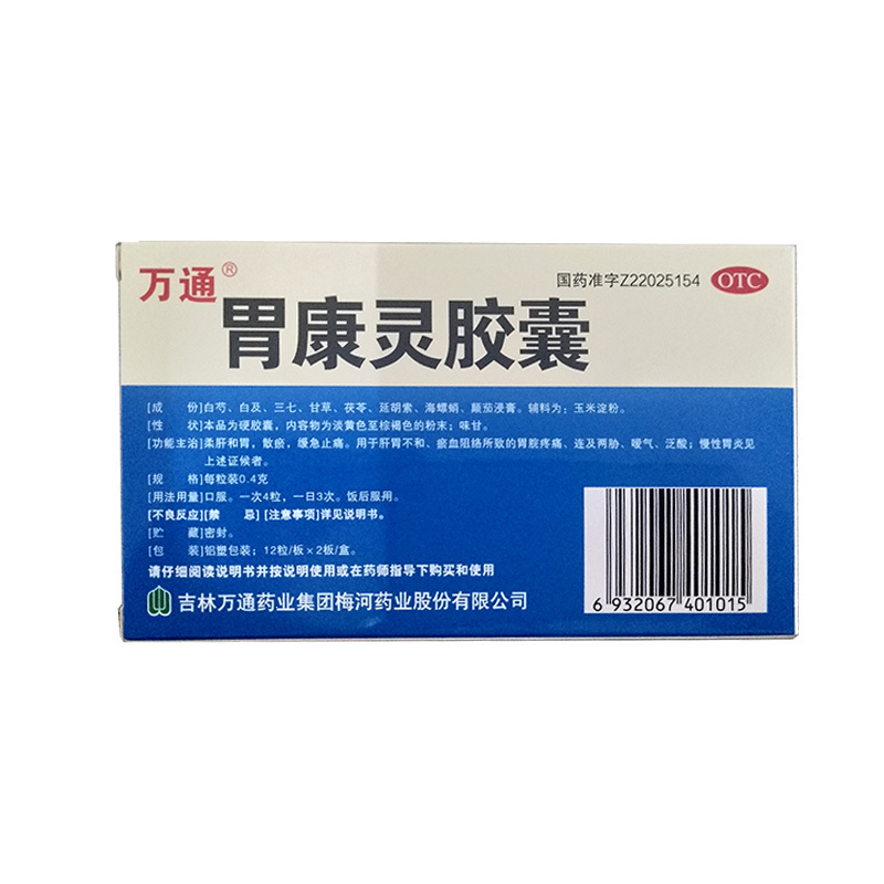 胃康灵胶囊 0.4g*24s 吉林万通药业集团梅河药业股份有限公司