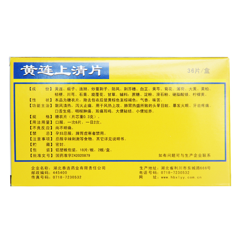 黄连上清片 0.3g*36s 湖北香连药业有限责任公司