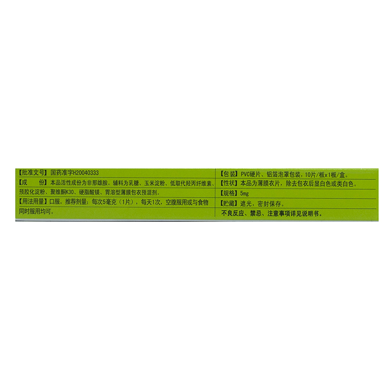 非那雄胺片(千诺林)(薄膜衣片) 5mg*10s(10) 湖南千金湘江药业股份有限公司