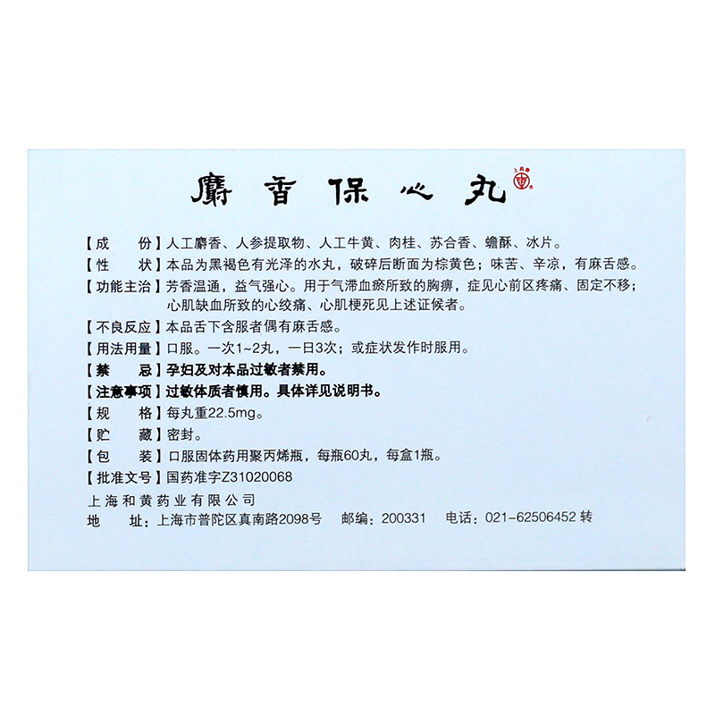 麝香保心丸 22.5mg*60s 上海和黄药业有限公司