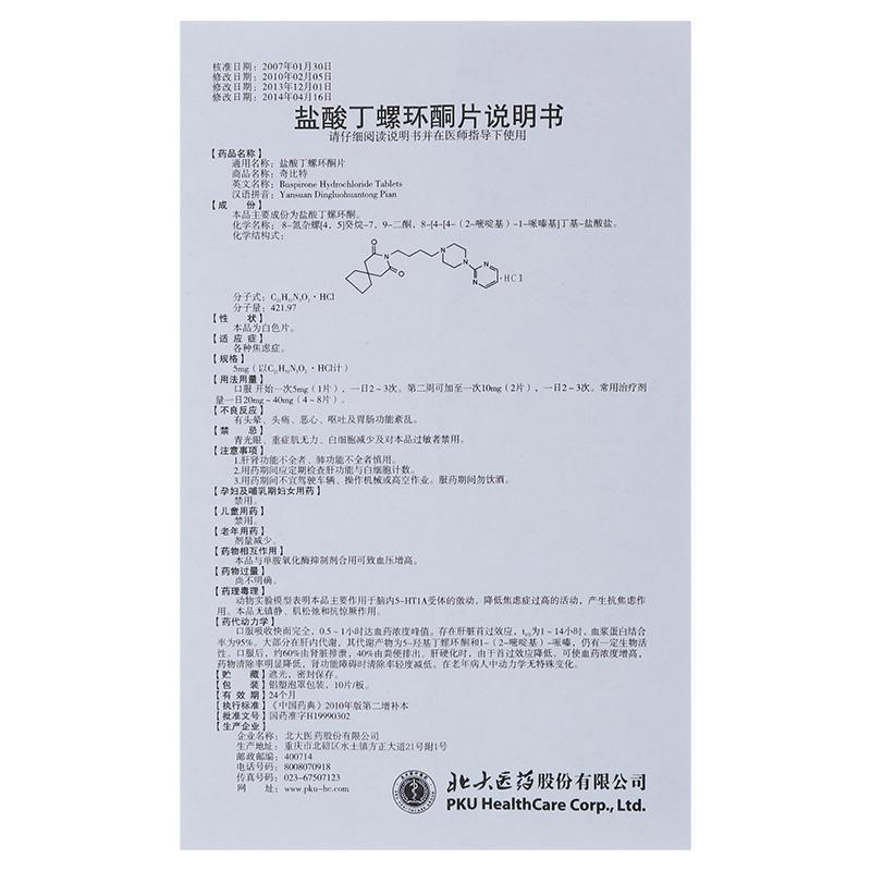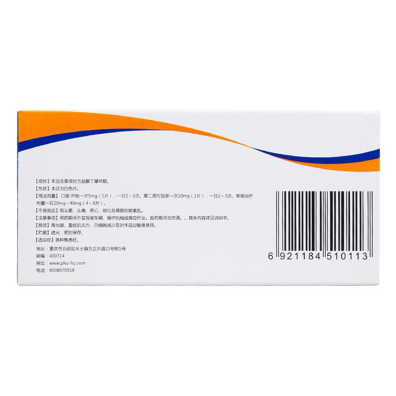 盐酸丁螺环酮片 5mg*40s 北大医药股份有限公司