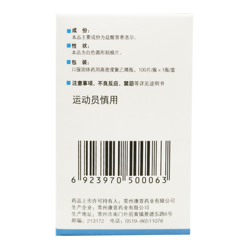 盐酸普萘洛尔片 10mg*100s 常州康普药业有限公司