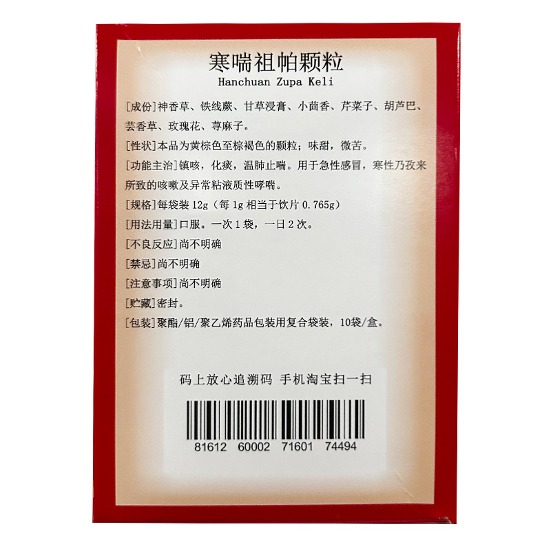 品  名: 寒喘祖帕颗粒