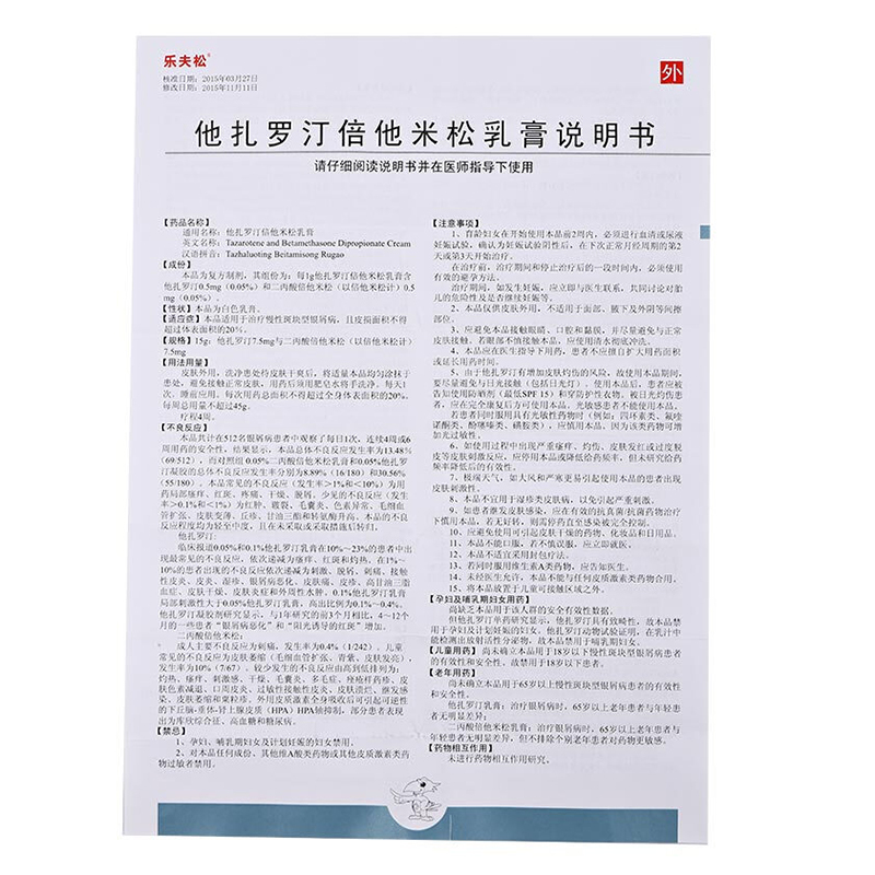 他扎罗汀倍他米松乳膏 15g 重庆华邦制药有限公司