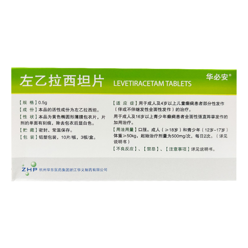 左乙拉西坦片 0.5g*30s 杭州华东医药集团浙江华义制药有限公司