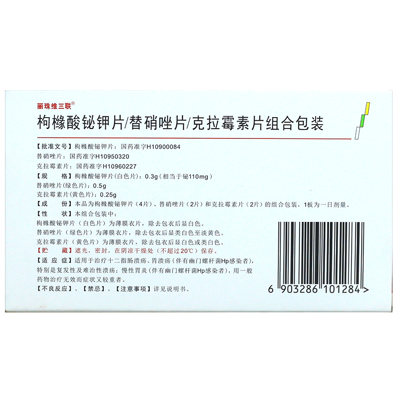 枸橼酸铋钾片/替硝唑片/克拉霉素片组合包装【丽珠维三联】 8s 丽珠集团丽珠制药厂