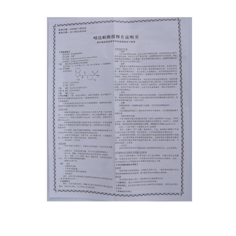 品  名: 吲达帕胺缓释片
