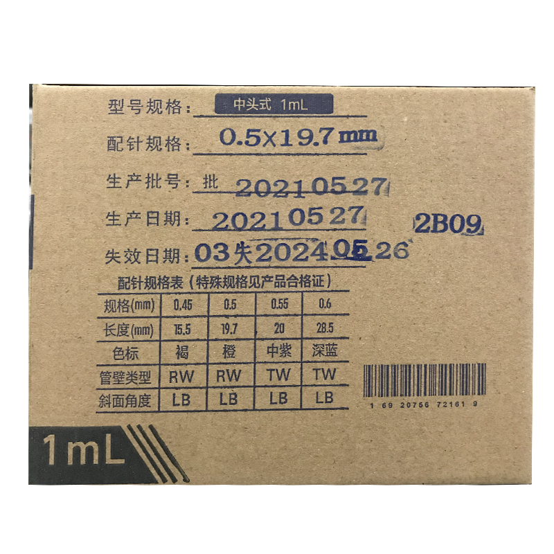 规  格: 1ml*0.5#