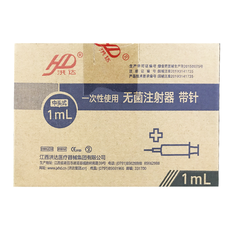 一次性使用无菌注射器带针(中头式)【器械注射器】1ml*0.5# 江西洪达医疗器械集团有限公司