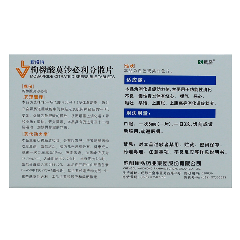 枸橼酸莫沙必利分散片(新络纳) 5mg*12s 成都康弘药业集团股份有限公司