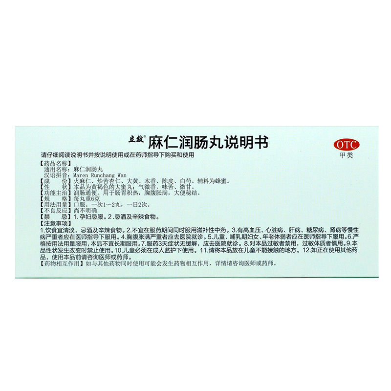 麻仁润肠丸 6g*10丸 山西华康药业股份有限公司