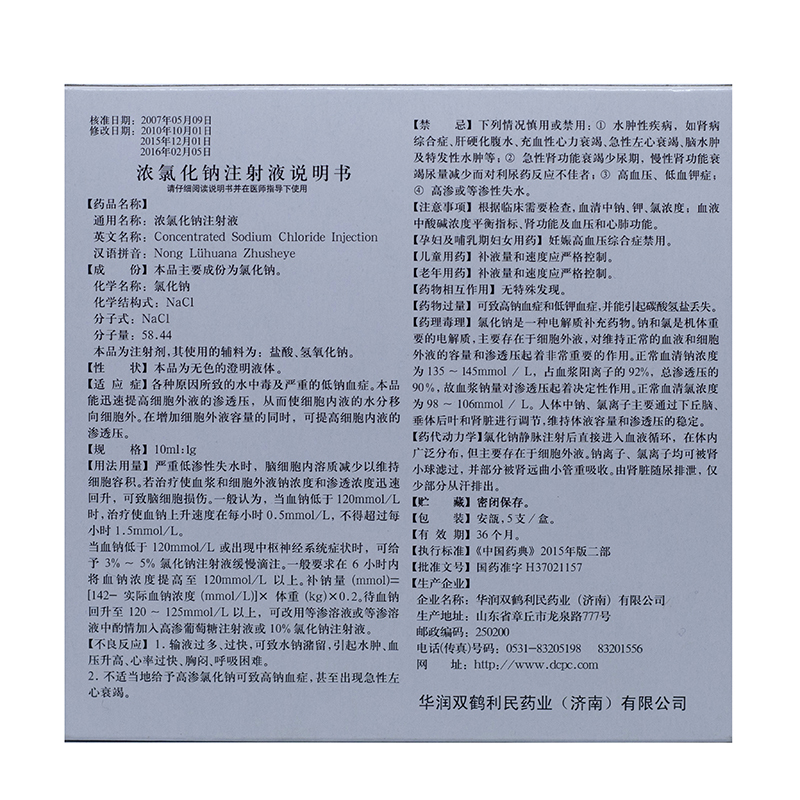 浓氯化钠注射液 10ml:1g*5支 华润双鹤利民药业(济南)有限公司