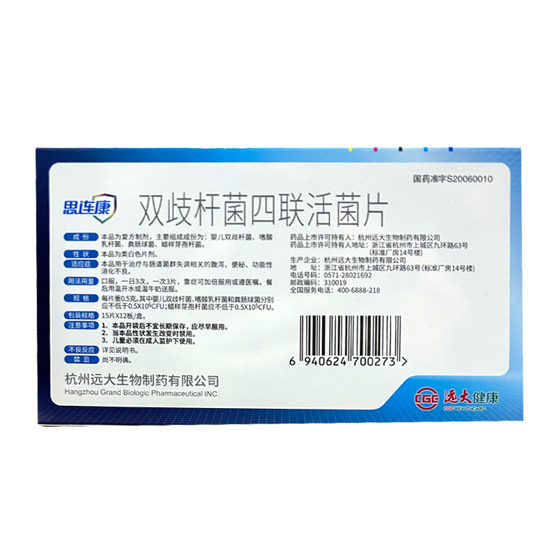双歧杆菌四联活菌片 0.5g*180s 杭州远大生物制药有限公司