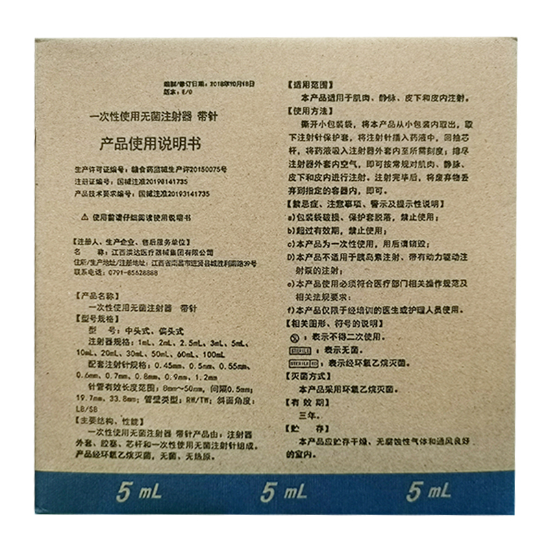 一次性使用无菌注射器带针(中头式)【器械注射器】 5ml*0.7#(100) 江西洪达医疗器械集团有限公司
