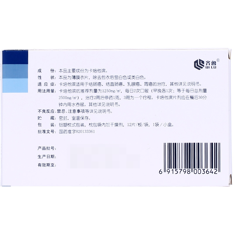 卡培他滨片 0.5g*12s 齐鲁制药有限公司