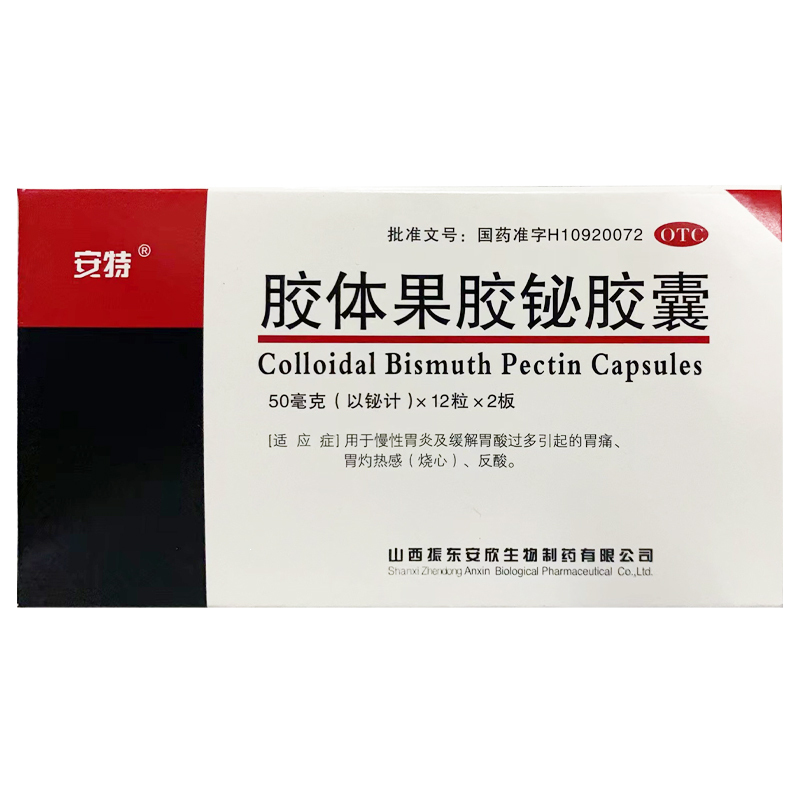 胶体果胶铋胶囊 100mg*12s*2板 山西振东安欣生物制药有限公司